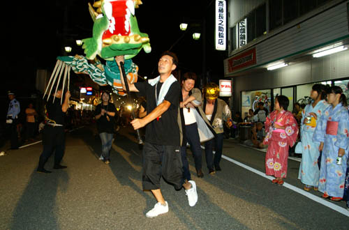 今年で、なんと15回目の参加となります。まさしく飛龍の発祥の祭りなのです。また、昼のパレードということもあって夏宵まつりとは一味違った飛龍の勇姿をご覧いただけると・・